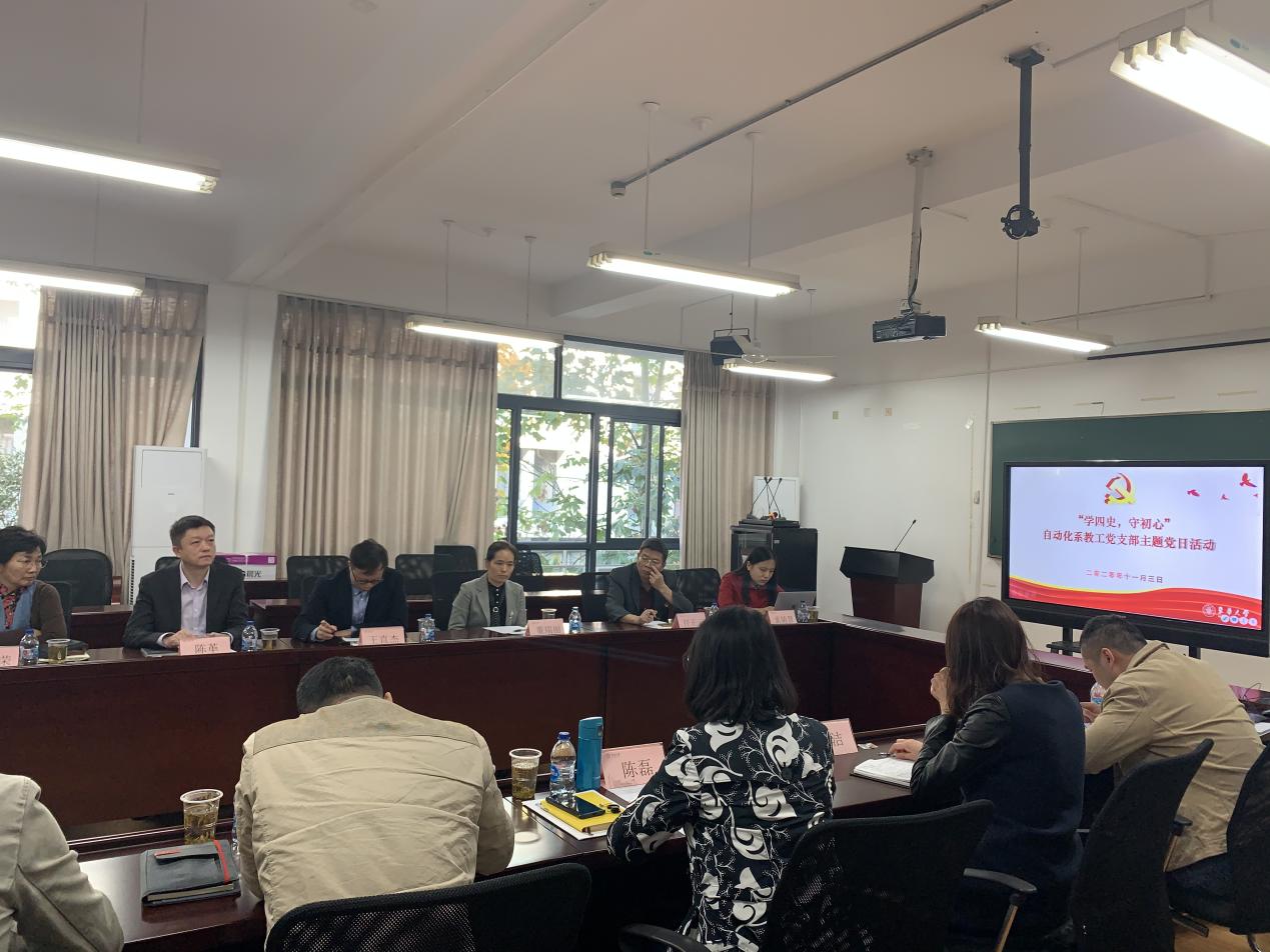 11月3日,副校长陈革来到信息科学与技术学院自动化系党支部参加“学四史,守初心”主题党日活动。信息科学与技术学院院长王直杰、副院长沈波、自动化系系主任齐洁、支部书记陈磊以及自动化系党支部全体党员参加活动。