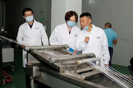 “‘要到企业中去发现问题,调研问题,提出解决方案,再加以实施、总结’,这是朱老师经常和大家说的话。”团队成员、材料学院博士后周家良说。我国化纤产量占全球70%,其中超过八成是量大面广的聚酯和聚酰胺纤维,且同质同构现象较为严重。高感性多功能的高品质纤维供给不足,功能化产品比例偏低。因此,兼具抗菌、阻燃等健康防护和舒适亲肤等高感性多功能纤维的研发,成为国家行业急需和国际竞争的焦点。