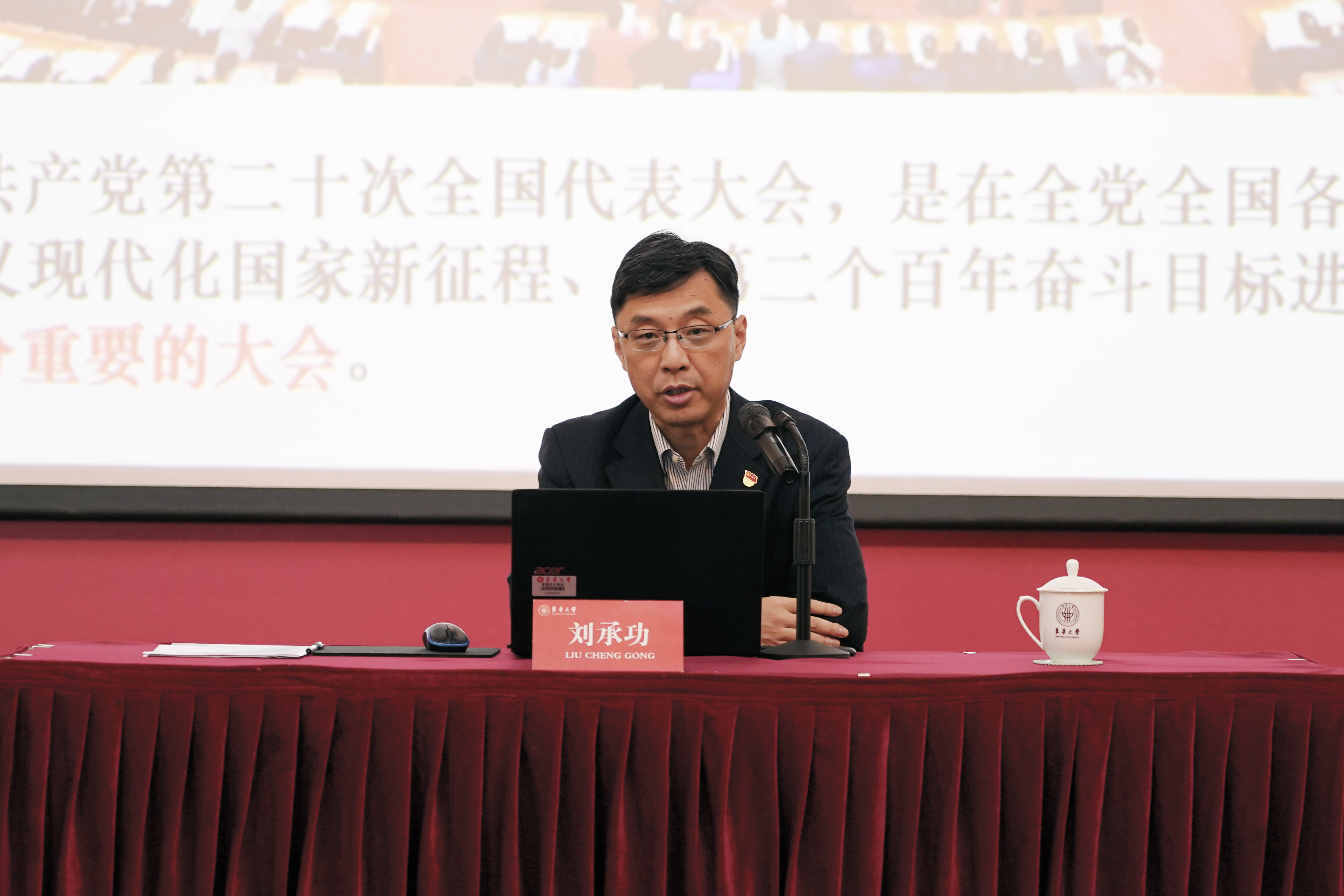 “2035年,我国要建设成为教育强国、科技强国、人才强国,对于我们高校来说,就是要坚持为党育人、为国育才,全面提高人才自主培养质量,着力造就拔尖创新人才。”11月15日,学校成立学习宣传贯彻党的二十大精神宣讲团,党委书记刘承功带头走上讲台,以“学习贯彻党的二十大精神 凝聚奋进新征程强国力量”为题,为干部师生带来一场丰盛的“思想大餐”。这也是我校党的二十大精神宣讲团的首场宣讲报告。党委副书记刘淑慧主持活动。