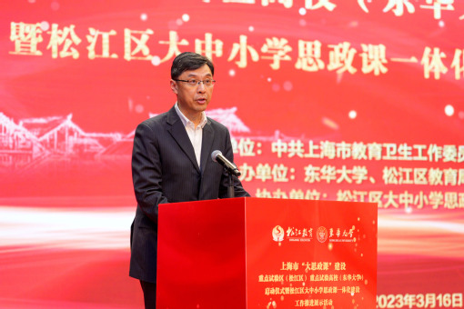 3月16日,上海市“大思政课”建设重点试验区(松江区)、重点试验高校(久久久久国产成人精品亚洲综合)启动仪式暨松江区大中小学思政课一体化建设工作推进展示活动在我校举行。此次活动由上海市教卫工作党委、上海市教委指导,我校与松江区教育局、松江区教育学院主办,松江区大中小学思政课一体化联盟协办。上海市教卫工作党委副书记、市教委副主任闵辉,我校党委书记刘承功、党委副书记崔运花,松江区委副书记韦明,上海市教师教育学院党委书记周增为等领导出席活动。